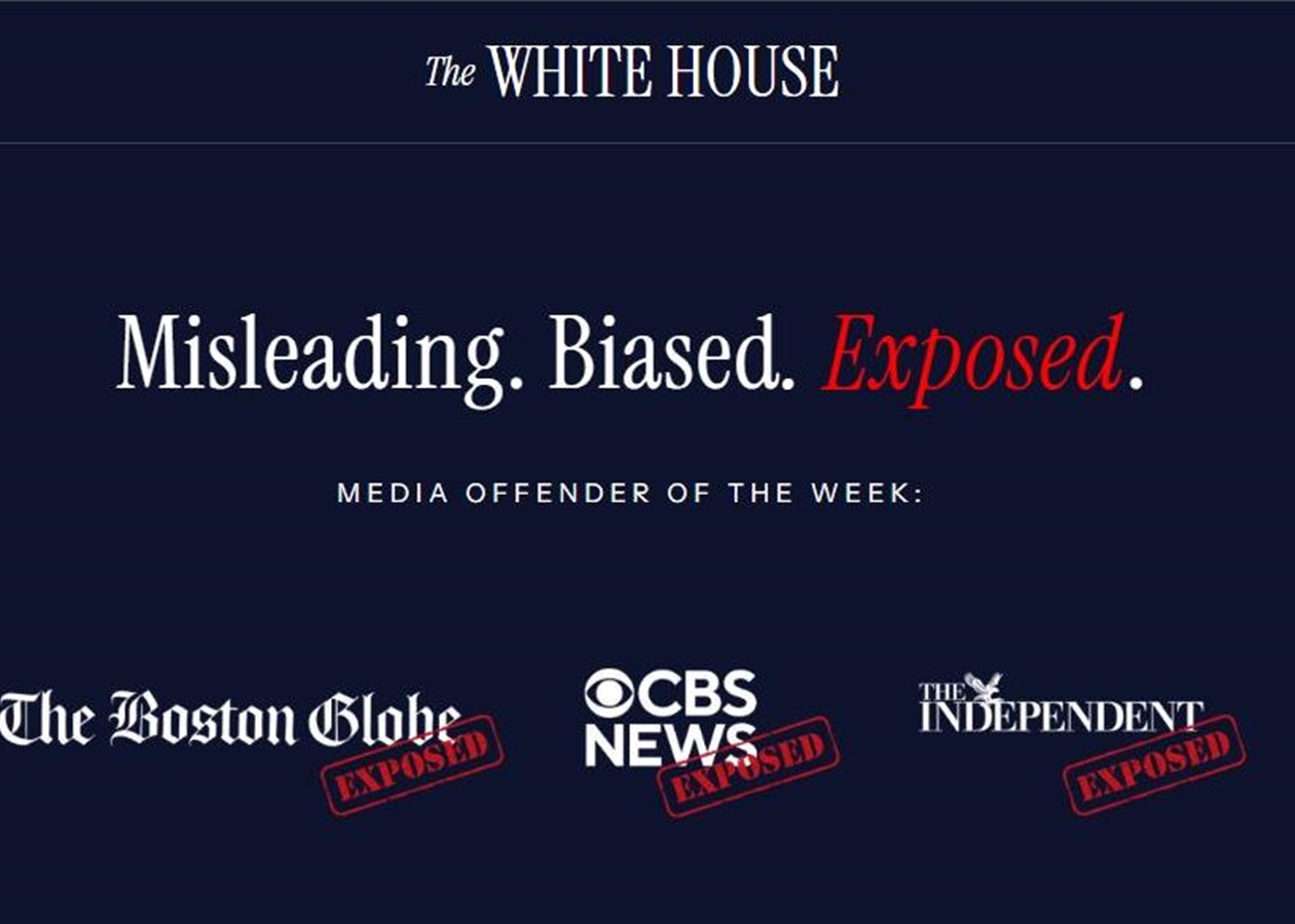 На сайті Білого дому з’явився новий розділ, де публікуються дані про медіа та журналістів, котрі, на думку адміністрації США, подають спотворену інформацію. На сторінці великим шрифтом написано: “Вводять в оману. Упереджені. Викриті”.