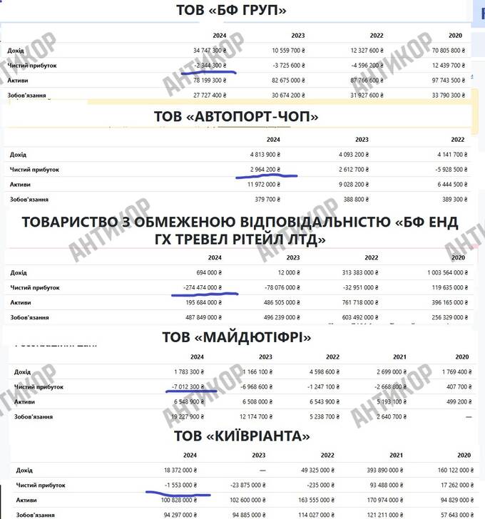Як бачите, до 2020 року вона демонструвала непоганий прибуток. А потім пішла у збитки. Розгадка тут проста – за рік до цього в Україні змінилася влада. І багаторічний партнер і покровитель Артура Гранца нардеп Андрій Іванчук (помер у 2023 році від серцевого нападу) втратив політичний вплив. Хоча обидва заперечували участь політика у бізнесі, вона підтверджується фактами, що лежать на поверхні: помічник Андрія Іванчука Юрій Грищенко досі є керівником ТОВ «БФ Груп» та ТОВ «Уяви!», які належать Артуру Гранцу.