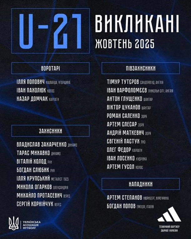 Склад збірної України U-21 на жовтневі поєдинки кваліфікації до Євро-2027: